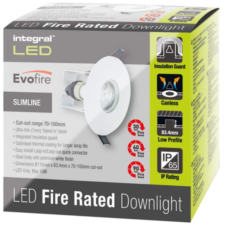 Downlight, Fire Rated Round LED IP65, c/w GU10 Holder & Insulation Guard